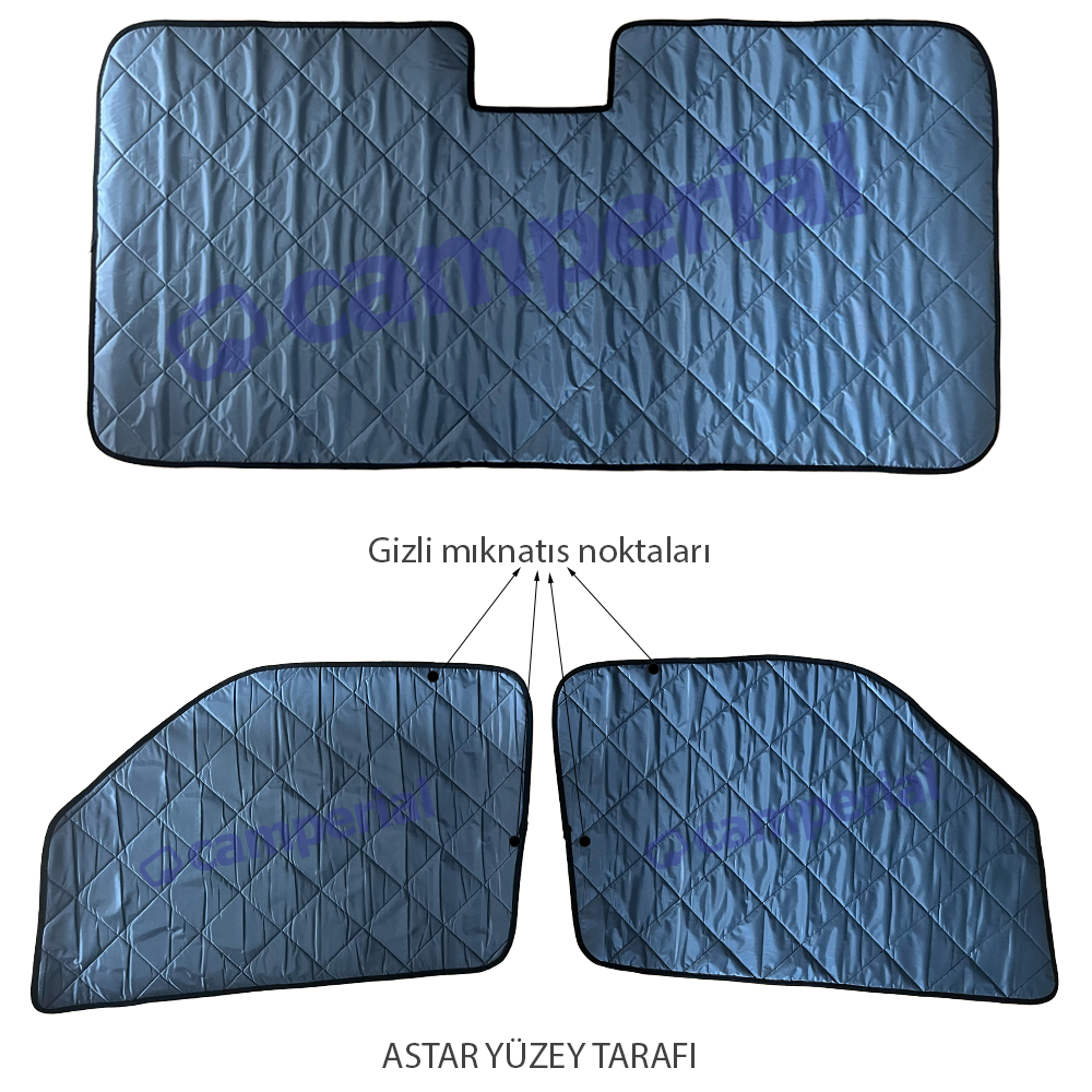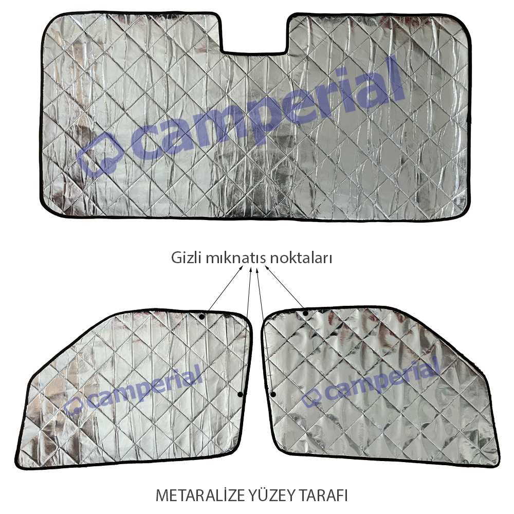 Ürün Termal mat teknolojisi ile ısı yalıtımı sağlar. Kışın dışarıdaki soğugun, Yazın dışarıdaki sıcaklığın içeriye girmesini engeller. Motokaravanlarda ısı yalıtımının en sorun olduğu Ön cam ve yan camlar için üretilmiştir.
